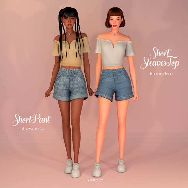 Bloomtide Collection🌺 – Short Sleaves Top Short Pant Hi! This is the last outfit from the collection, is HQ compatible and can be found in the Top and Bottom sections of the CAS. Short Sleaves Top – 9 swatches Short Pant – 15 swatches