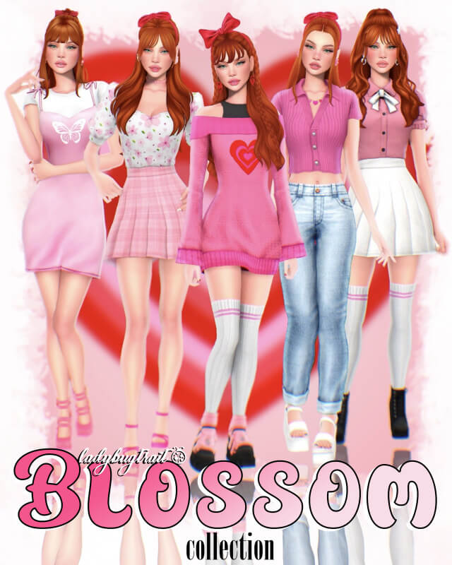 Blossom-Inspired Collection | The Powerpuff Girls This collection is a love letter to Blossom, the fearless and intelligent leader of The Powerpuff Girls! Featuring shades of pink, red, and white, each outfit embodies her sweet yet confident personality. From cute pleated skirts and floral prints to cozy oversized sweaters and classic knee-high socks, this collection blends preppy and feminine aesthetics with a touch of retro charm.