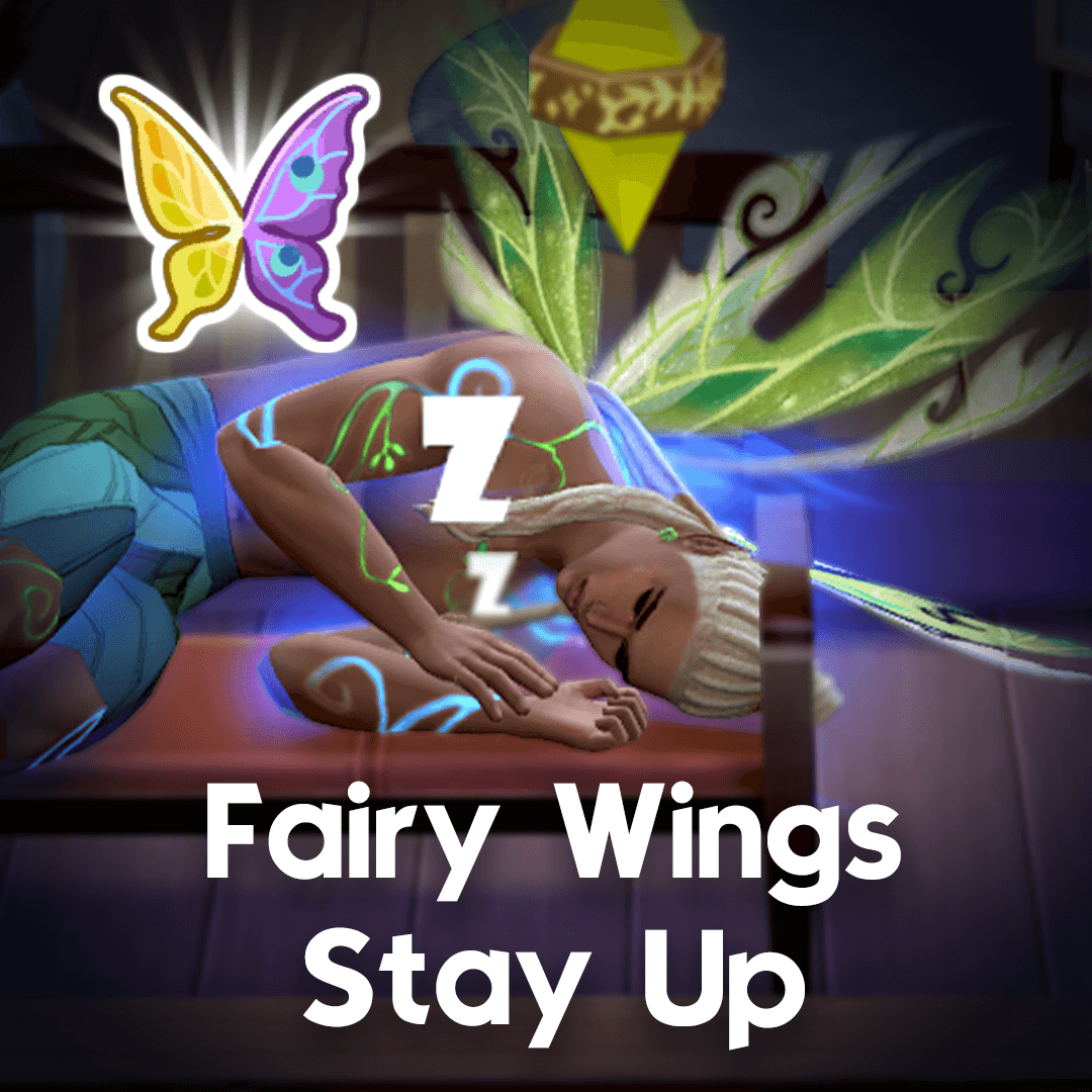I don’t really like how fairies put down their wings in so many situations, to the point you end up rarely seeing their beautiful wing designs. So to avoid overriding so many situations to enable wings, I simply changed the action to put them down to just do the opposite. The wings stay on even during sleep, so it might not be everyone’s preference. I like it because it’s incredibly patch-proof and easy to maintain, and having Sims clip/reset just by existing already in vanilla game, kind of negates the issues of wings clipping through some chairs and bedding IMO.
