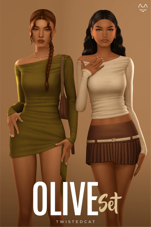 Olive Set Hope you enjoy! ✨ Includes top, dress, and skirt – 18 Swatches F, T-E, BGC