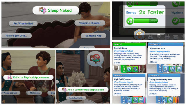 Sleep Naked Mod 2. The Sleep Naked option should now appear on the new bed that came with the Businesses & Hobbies Expansion Pack: 5. Some codes got a minor update.